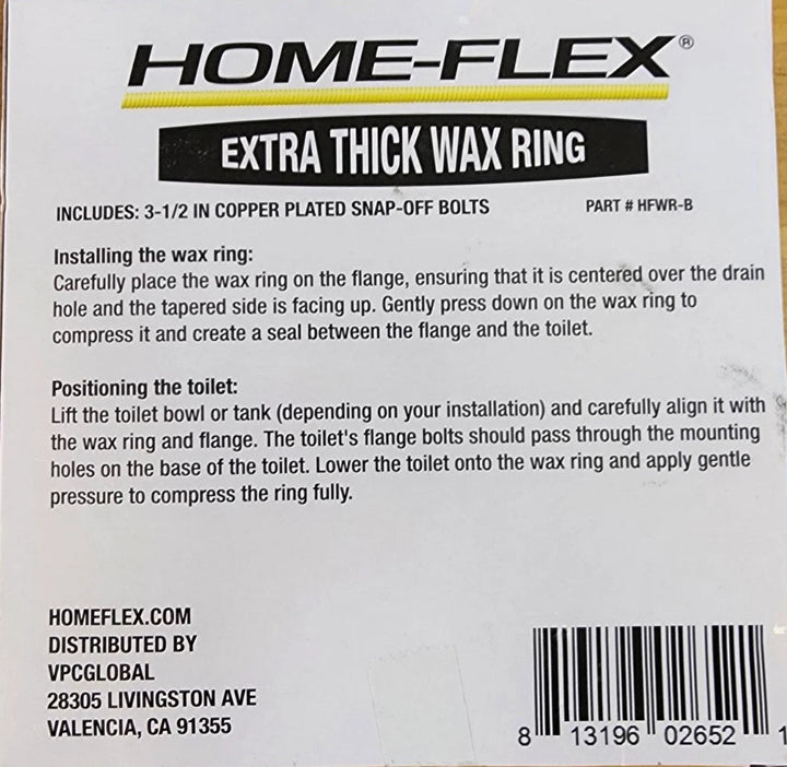 These Home-Flex Extra Thick Wax Rings provide a strong, reliable seal for floor-mounted toilets, helping prevent leaks and ensuring long-lasting stability. Ideal for new installations or replacing old, worn-out seals. Designed for easy installation with dependable performance.