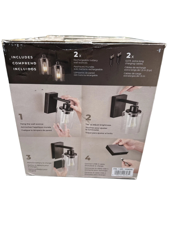 Add stylish and convenient lighting to your space with this set of 2 rechargeable wall sconces. Featuring a sleek black base and globe-style design, these sconces provide versatile placement without the need for hardwiring. Perfect for bedrooms, hallways, living rooms, or accent lighting.