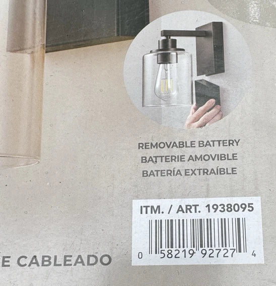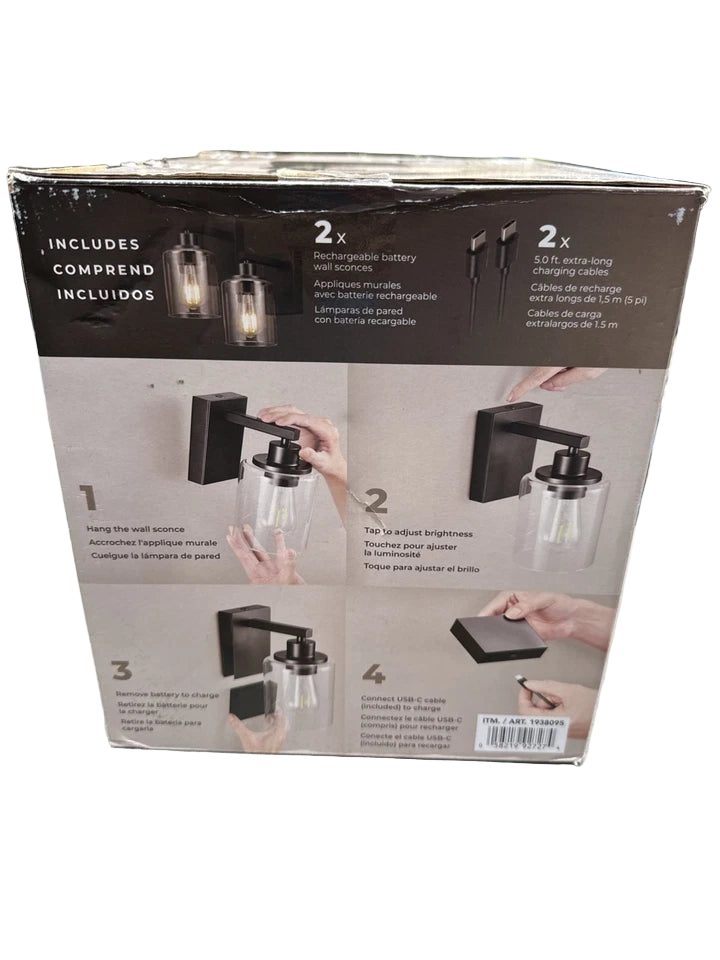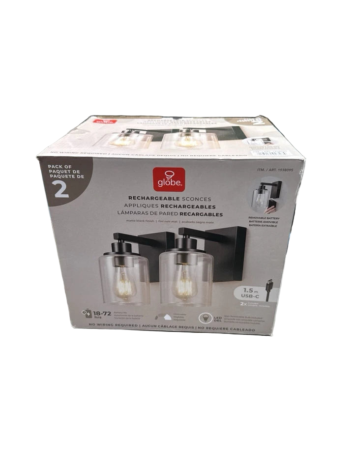2 Wall Sconce Lights Battery Rechargeable Globe with Black Base – GB – NEW