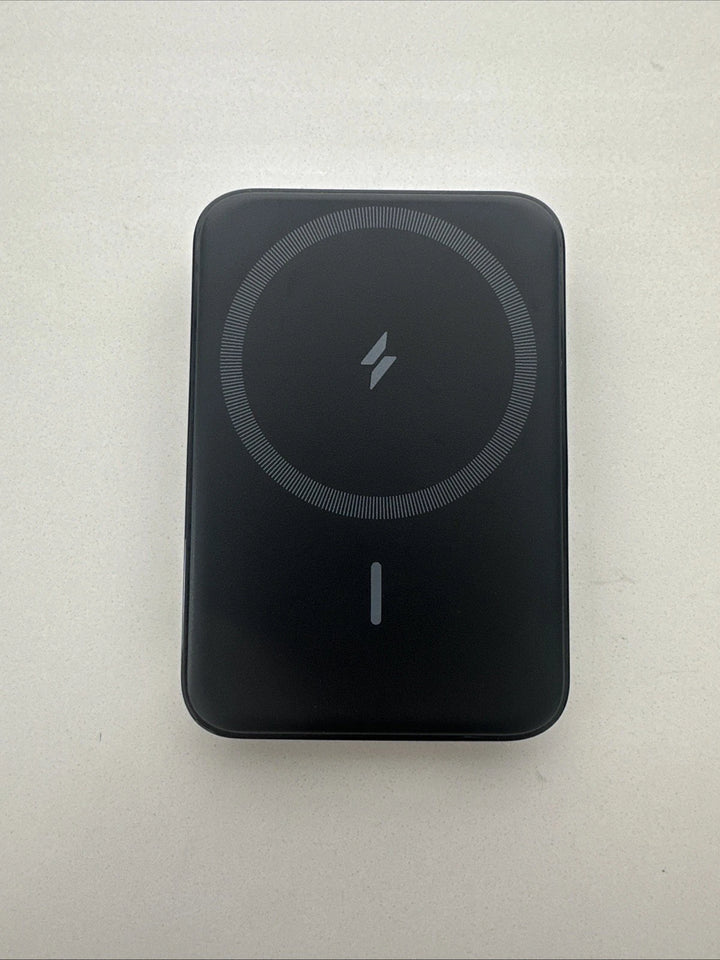 Anker MagGo 5000mAh Magnetic Power Bank with built-in kickstand and wireless charging. Designed for MagSafe-compatible devices for fast, reliable charging on the go. This unit is pre-owned with some cosmetic wear, tested, and works perfectly.