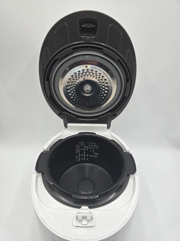 Cook perfect rice and more with the CUCKOO CRP-ST0609F twin pressure rice cooker. Featuring dual pressure modes, this 6-cup uncooked (12-cup cooked) capacity cooker offers versatile cooking options, from fluffy white rice to hearty grains. Lightly used and fully functional, it’s a great addition to any kitchen.