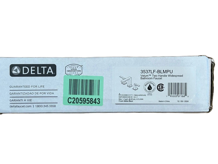 Elevate your bathroom style with the Delta Velum 3537LF-MPU widespread faucet in matte black. Featuring a modern two-handle design and WaterSense certified flow rate of 1.2 GPM, this faucet delivers both elegance and efficiency. Built with Delta’s trusted quality and durability, it’s perfect for a stylish bathroom upgrade.