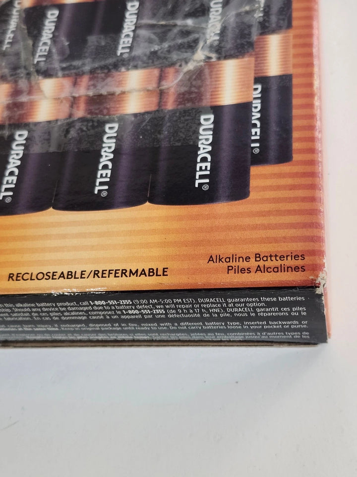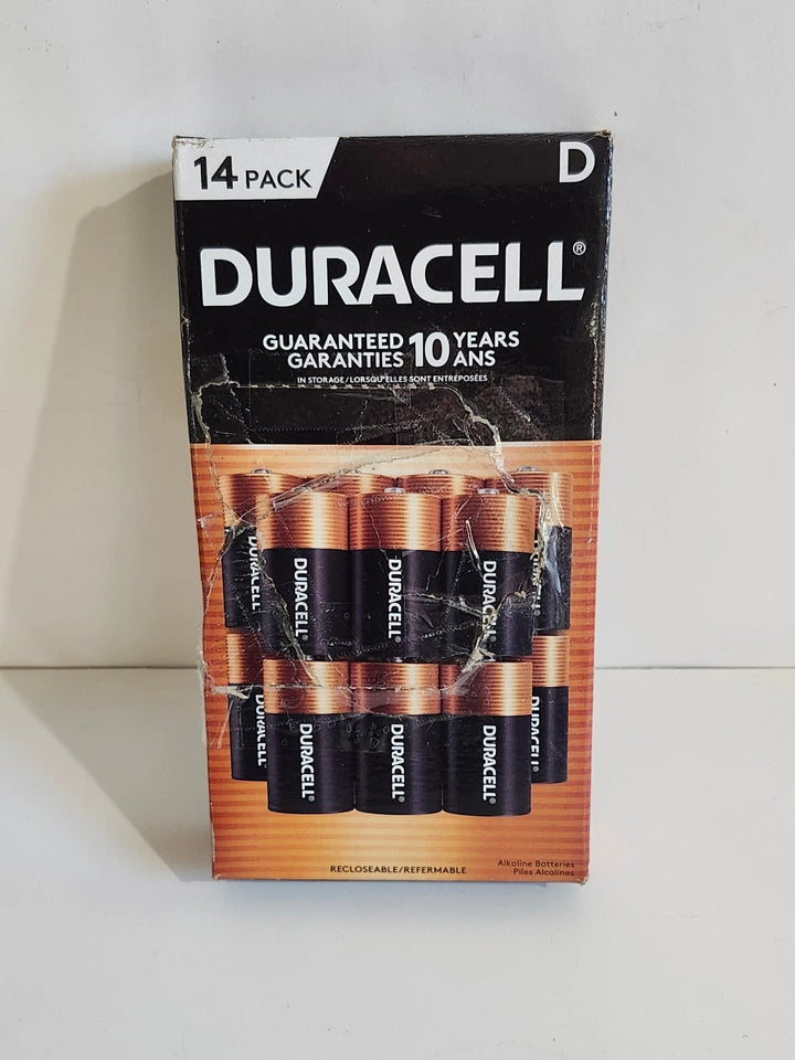 Duracell D Alkaline Batteries provide long-lasting, reliable power for high-demand devices such as flashlights, lanterns, radios, toys, and emergency tools. These fresh batteries deliver consistent performance with a long shelf life and are ready for everyday or emergency use. Box has a tear but batteries remain brand new and sealed inside.