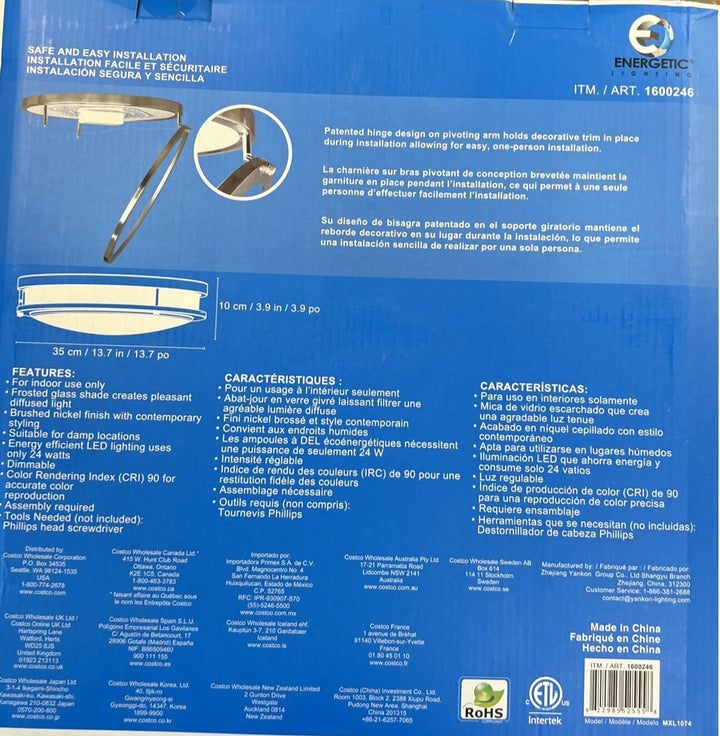 Energetic Lighting 14" LED Double Ring Flush Mount Ceiling Light 24W Dimmable NEW