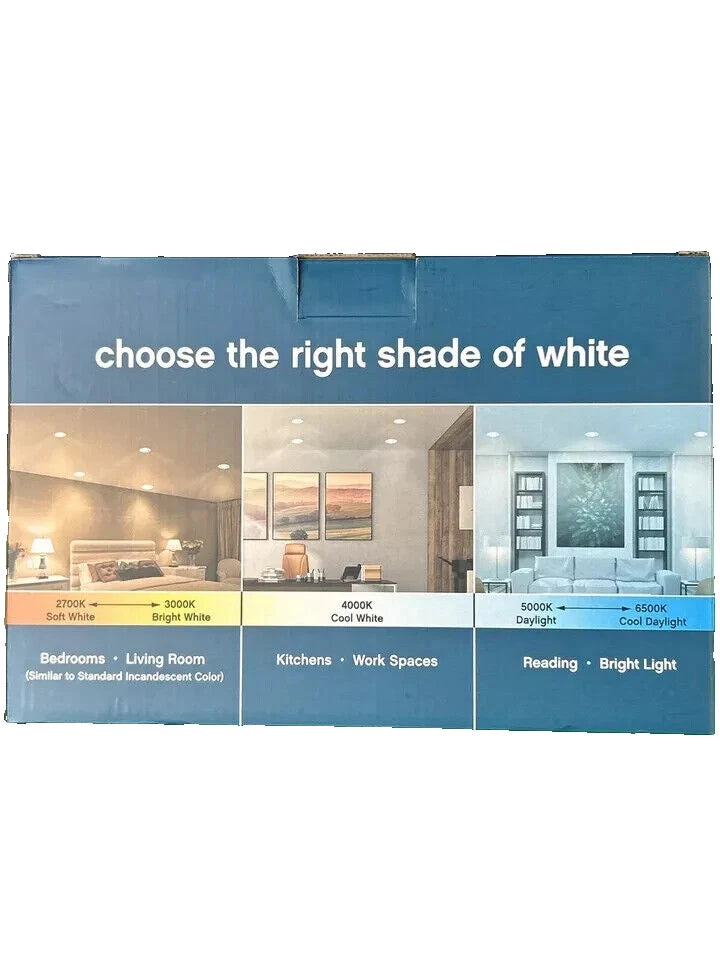 Brighten your home with the Feit Electric 75W replacement recessed LED downlights. This 4-pack features 5 selectable color temperatures (CCT) to match your preferred lighting environment and dimmable functionality for customized ambiance. Energy-efficient and long-lasting, these downlights are a perfect retrofit solution for kitchens, living rooms, and offices.