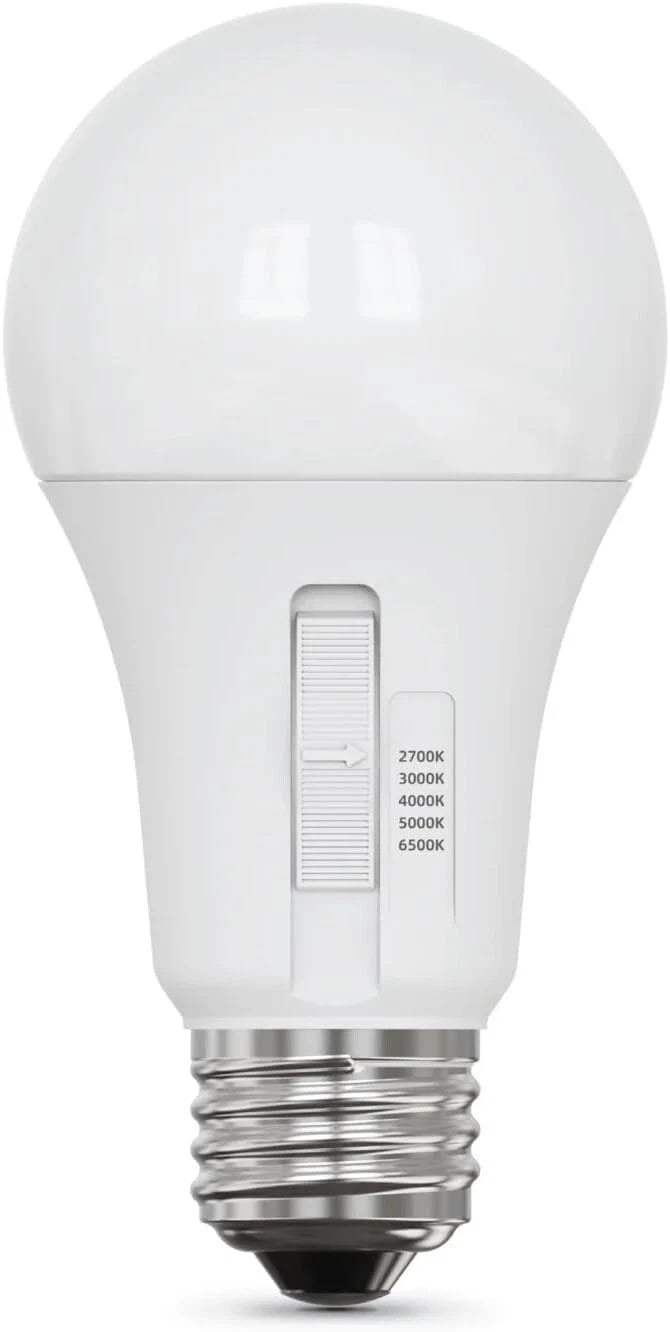 A new 4-pack of Feit Electric A21 LED bulbs, 100W replacement equivalent. Each bulb provides 1600 lumens of bright light with selectable 5CCT color temperatures. Fully dimmable, energy-efficient, and ideal for lamps, ceiling fixtures, and everyday household lighting.