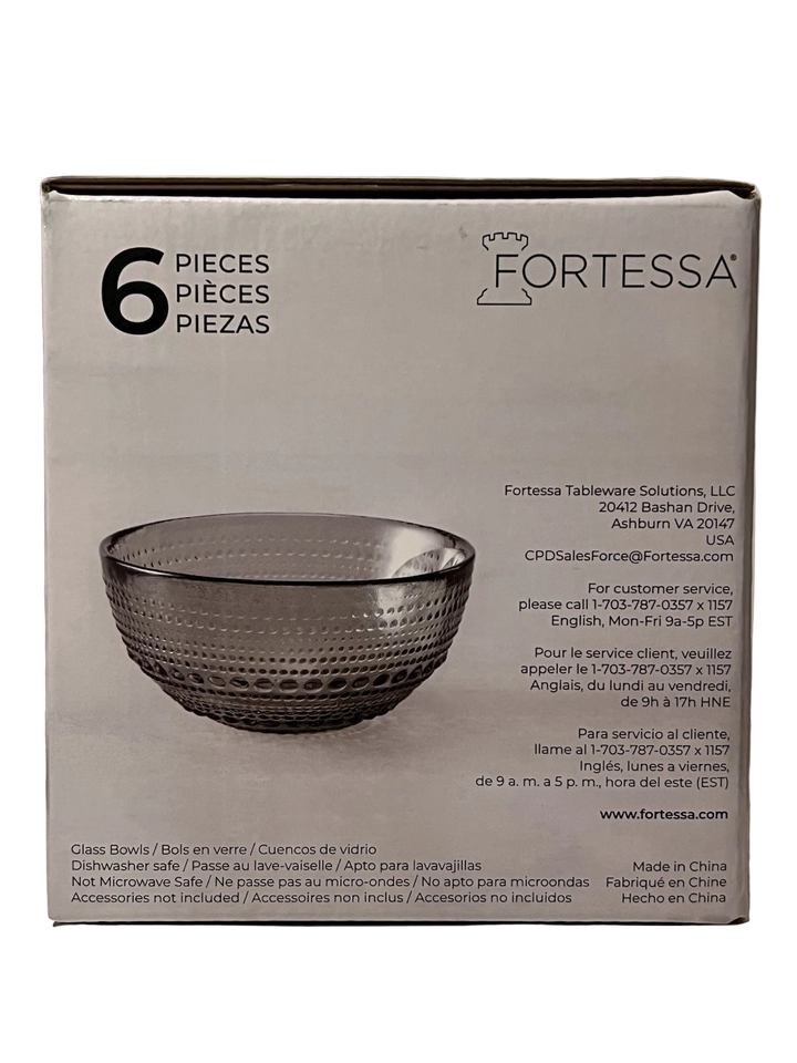 Fortessa Jupiter Gray Crystal Glass Bowl Set of 6 Beaded Design 13.5oz - NEW