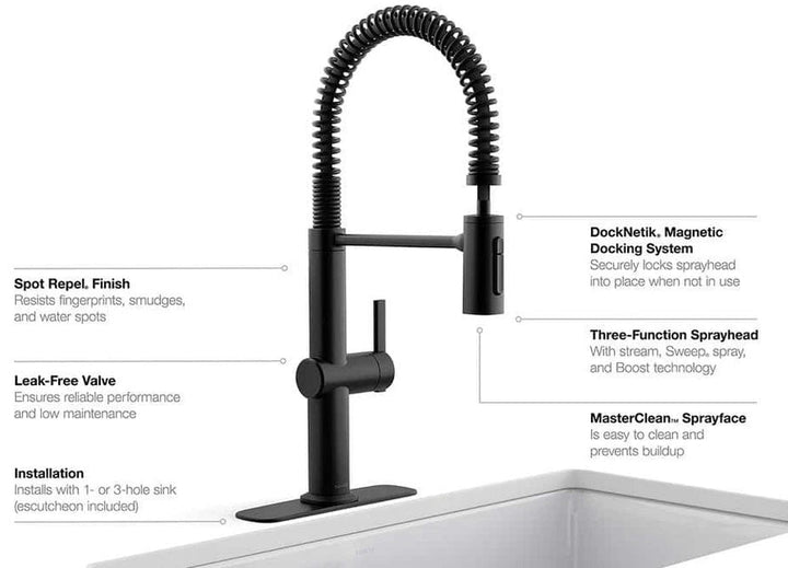 Kohler Haku K-R38475-BL Semi-Professional Kitchen Faucet Matte Black NEW