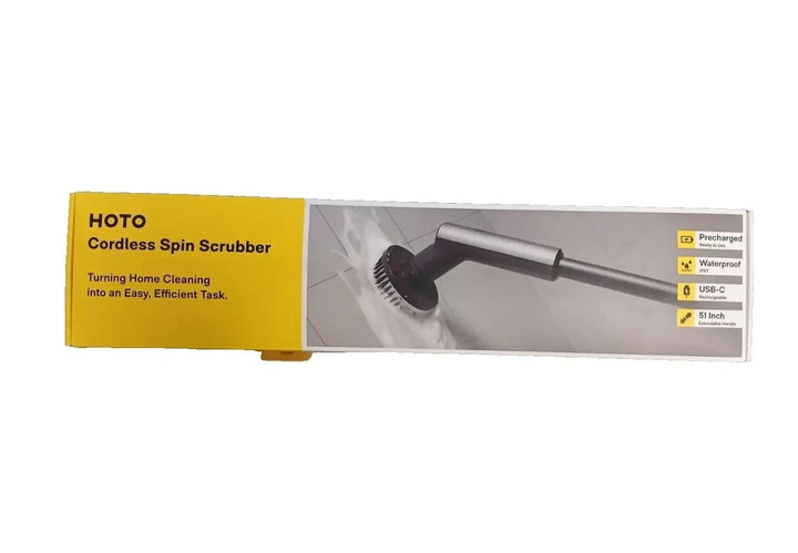 Clean smarter with the HOTO Cordless Spin Scrubber featuring 2.5 N·m torque and six interchangeable brush heads. Designed for deep cleaning in bathrooms, kitchens, and tile areas, this tool provides power and convenience in one sleek device. Open box inspected only — never used.