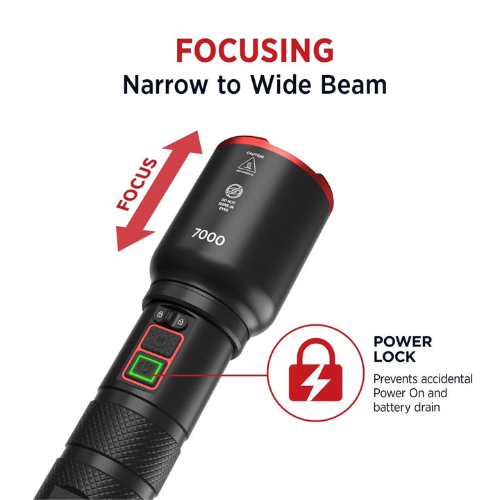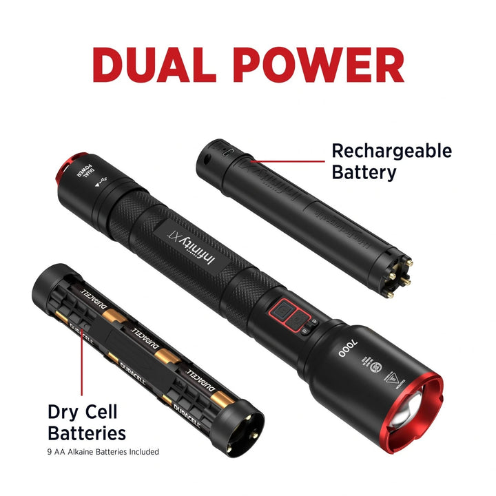 Infinity X1 7000L Dual Power Rechargeable Flashlight 7000 Lumen CREE LED