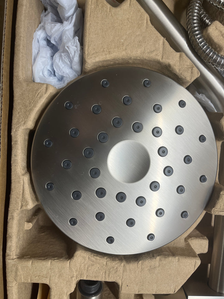 The Kohler Hydrorail R38001-G-BN 3-in-1 multifunction shower system combines modern style with versatile performance. Finished in brushed nickel, this system offers multiple spray settings for a customized shower experience. Used, in excellent condition – comes in original box.
