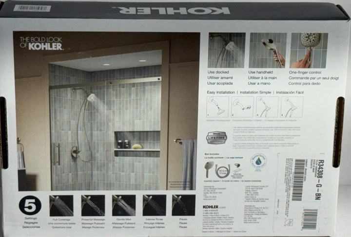 Kohler Tellin Multifunction Handshower 5 Spray Settings Brushed Nickel M63E NEW