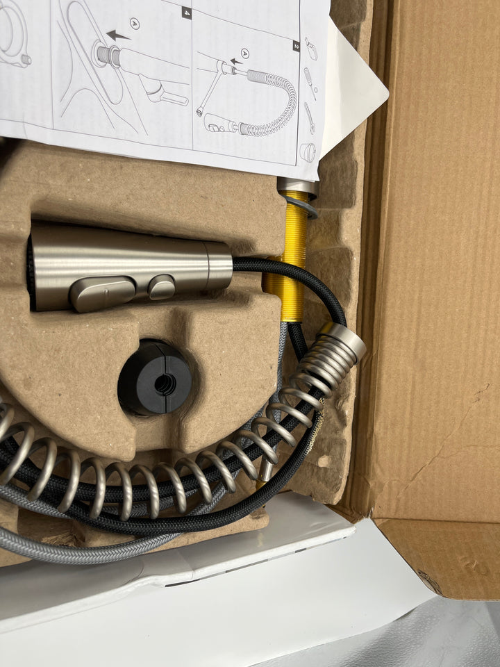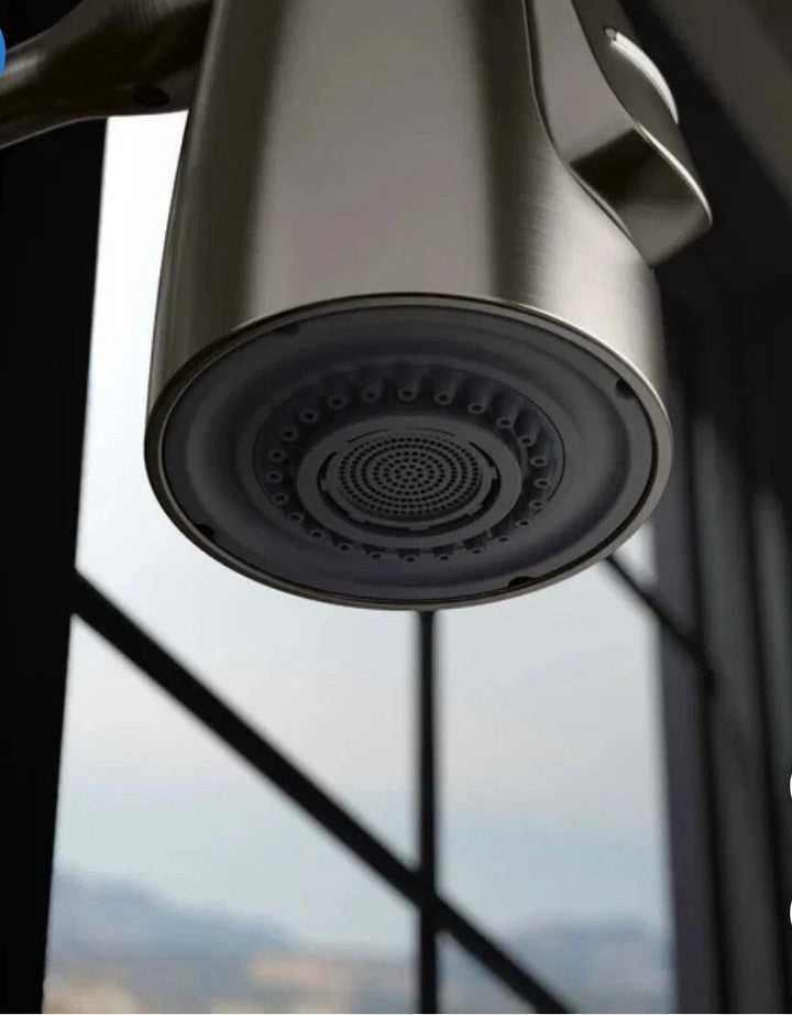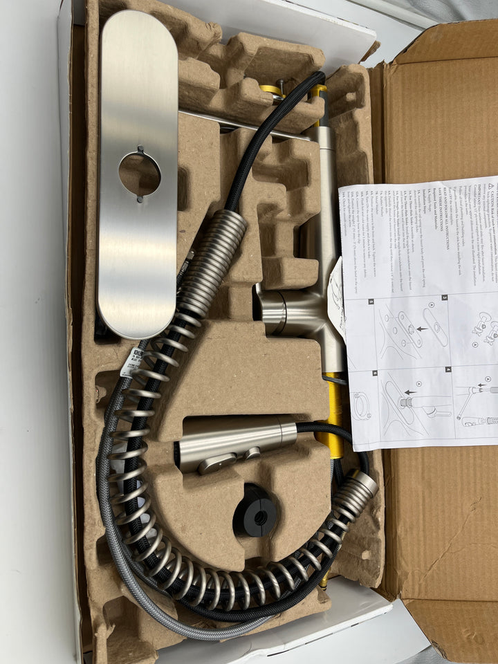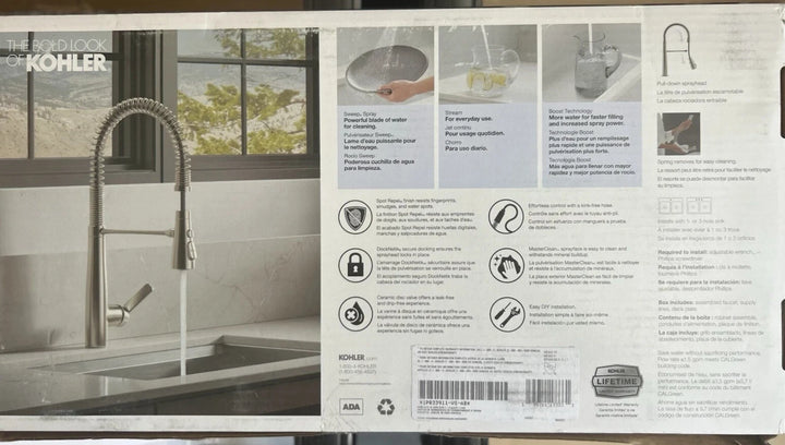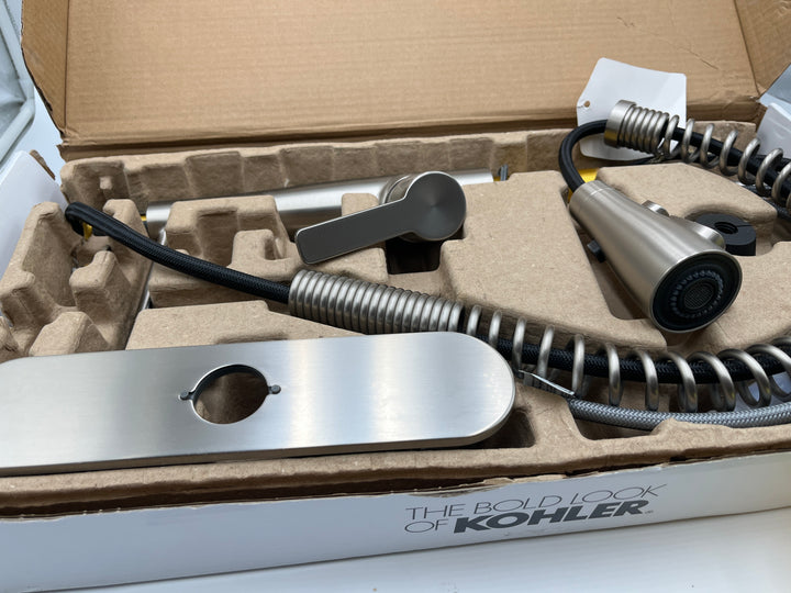 The Kohler Vind Semi-Professional Pull-Down Kitchen Faucet combines modern style with powerful functionality. Featuring a 3-function sprayhead (stream, sweep, and boost), this faucet offers flexibility for everyday cleaning and heavy-duty tasks. Pre-owned in very good condition and includes the original box.