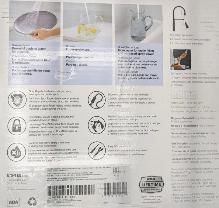 1x Kohler Vind Semi-Professional Kitchen Faucet (Matte Black)
