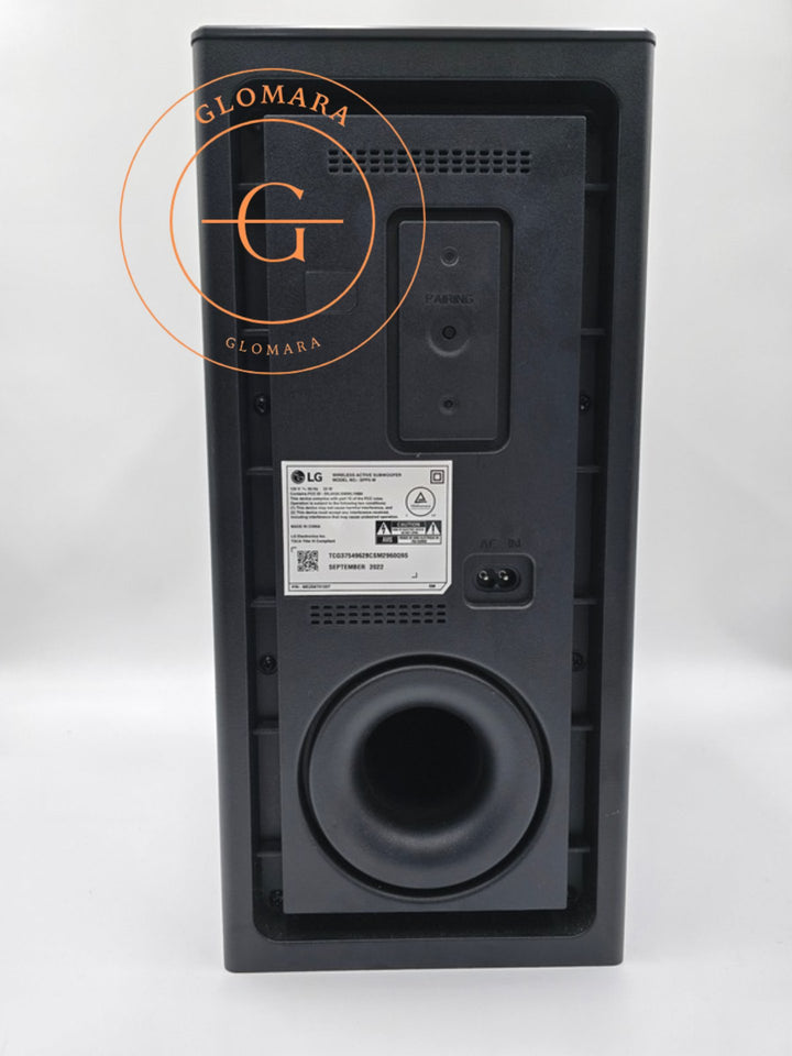 OEM genuine LG wireless active subwoofer model SPP5-W in black. Designed to pair with compatible LG sound bar systems, this subwoofer delivers powerful bass for a more immersive home theater experience. Pre-owned and fully tested in very good working condition.
