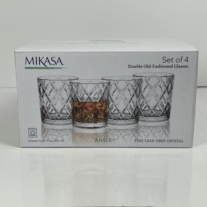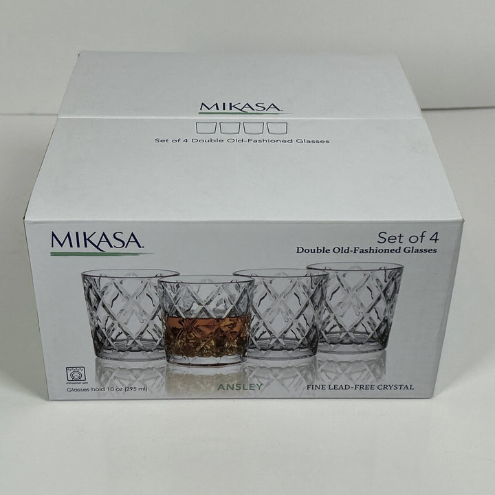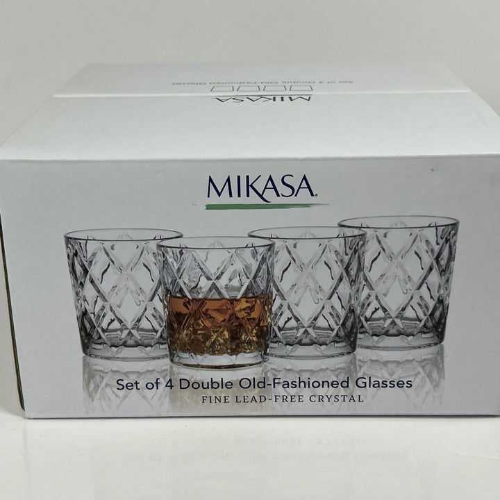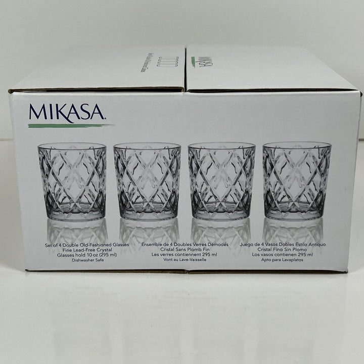 Mikasa Double Old Fashioned Crystal Glasses Set of 4 10oz Lead-Free - NEW