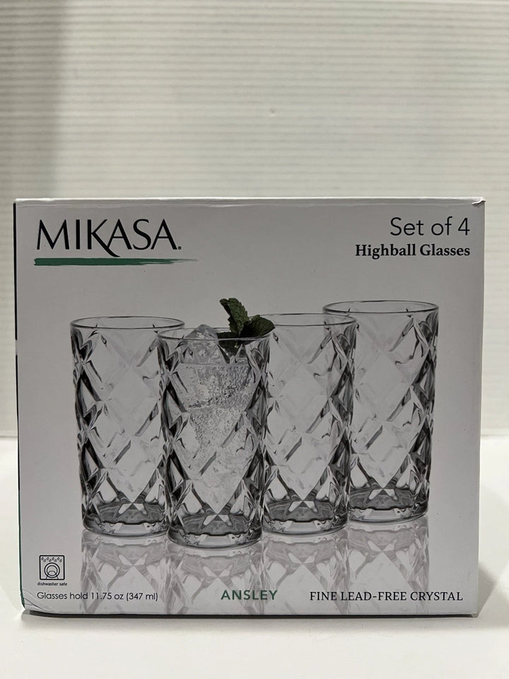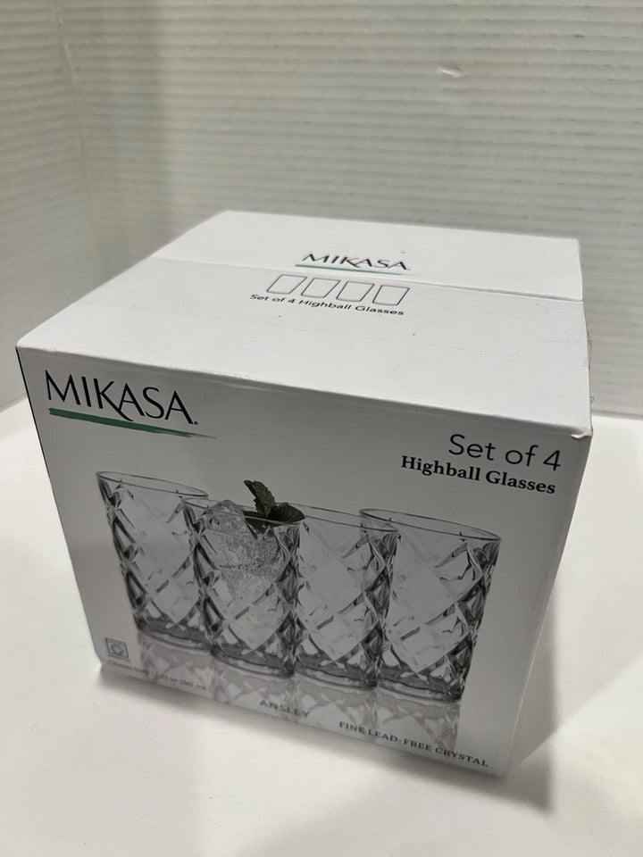 Set of 4 Mikasa Ansley lead-free crystal highball glasses (11.75 oz)