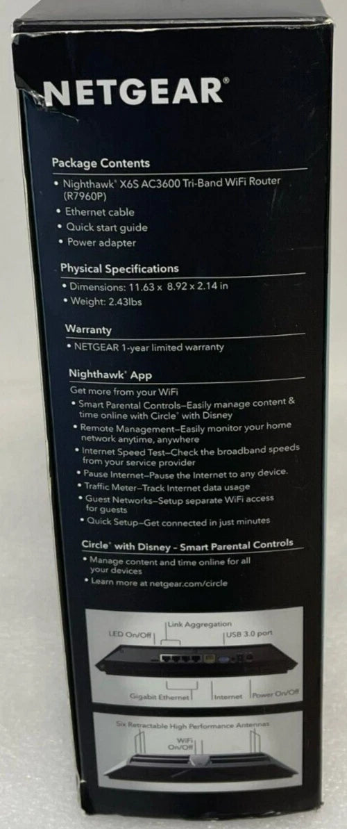 NETGEAR Nighthawk X6S AC3600 Tri-Band WiFi Router R7960P Gigabit Ethernet