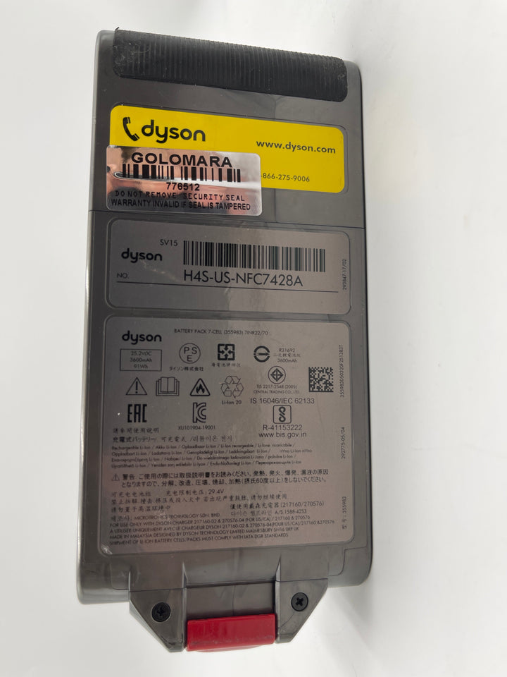 This OEM Dyson Click-In 3600mAh battery is compatible with multiple Dyson models including V15, V11, and Outsize series (SV29, SV15, SV16, SV22, SV28). Unit has been fully tested and is in excellent working condition, providing reliable runtime and performance. Perfect replacement for your worn-out or dead Dyson battery.