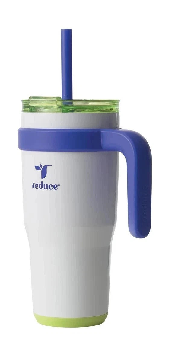 Enjoy your favorite drinks with the Reduce Cold1 24oz WHITE Tumbler 2-Pack. Each cup is insulated to keep beverages cold for hours and comes with a convenient handle and reusable straw. Items are open box but unused, ensuring like-new quality while saving you money.