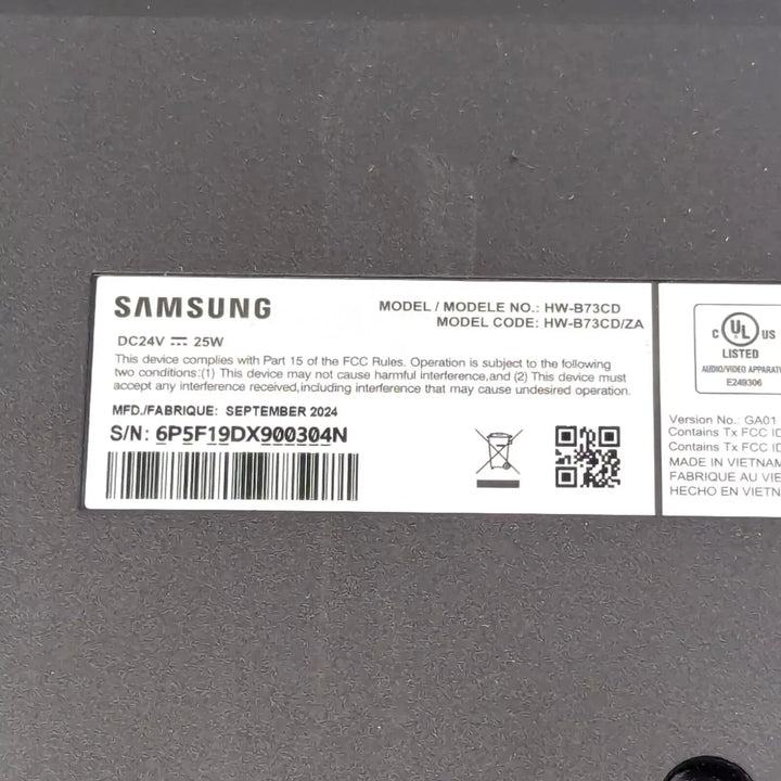 Genuine OEM Samsung HW-B73CD 5.1 Channel B-Series soundbar. This listing is for the soundbar only – subwoofer and accessories are not included. Perfect replacement if your original bar is missing or damaged. Tested, fully functional, and in excellent used condition.