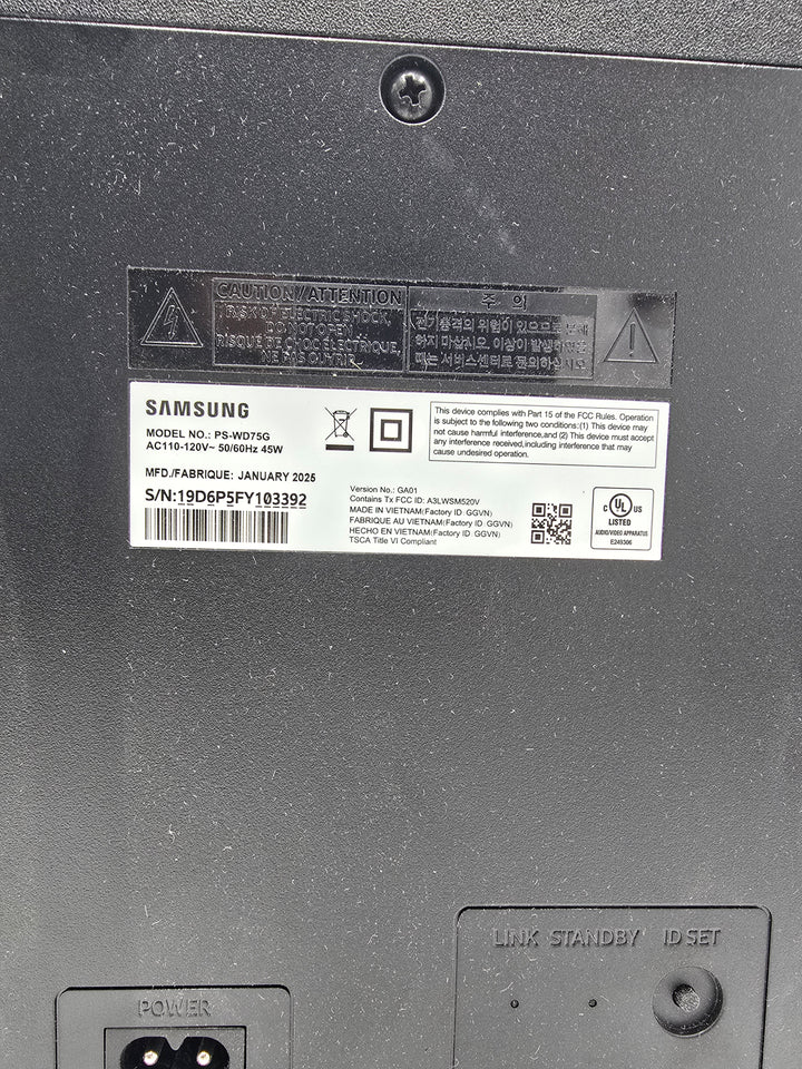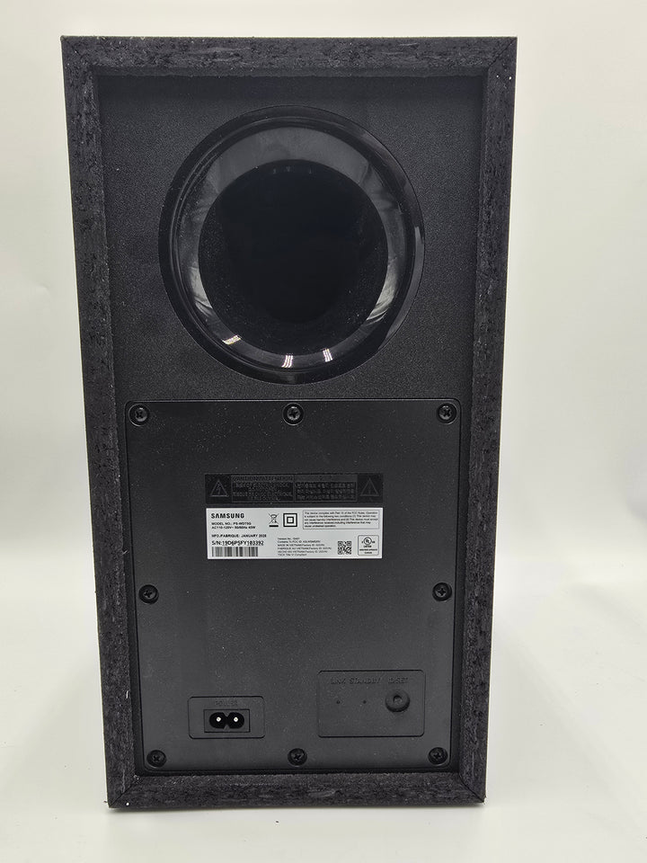 Enjoy powerful bass with the Samsung PS-WD75G Subwoofer, designed specifically for the HW-B73MD Soundbar system. This genuine Samsung subwoofer maintains optimal performance and blends seamlessly with your home theater setup.