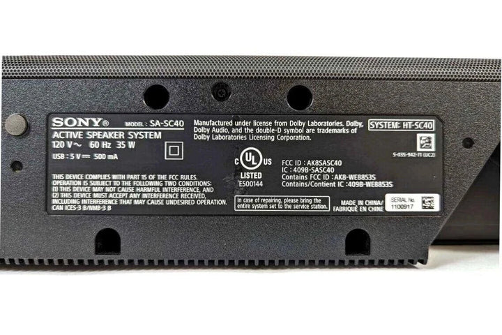 Genuine OEM Sony SA-SC40 2.1 Channel soundbar, designed for the HT-SC40 home theater system. Perfect replacement if your original soundbar is missing or damaged. Tested, fully working, and used in excellent condition. Subwoofer and accessories not included.