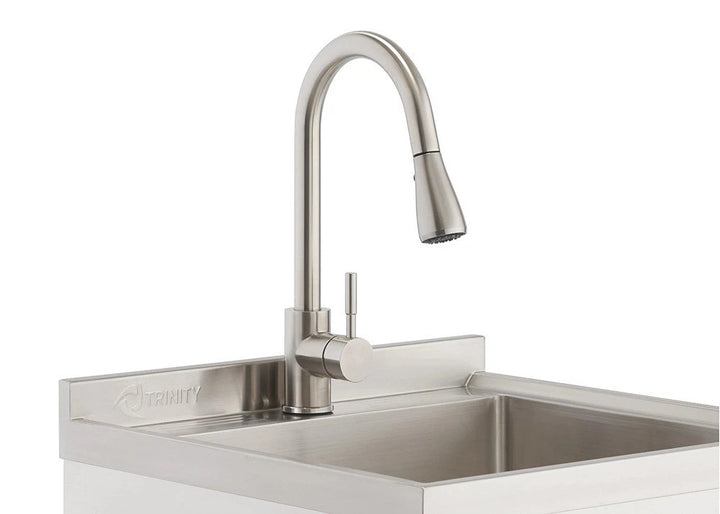 Upgrade your space with the Trinity stainless steel utility sink, perfect for laundry rooms, garages, and workshops. Its compact 18" x 16" x 13" design makes it ideal for small spaces while offering lasting durability and easy maintenance.